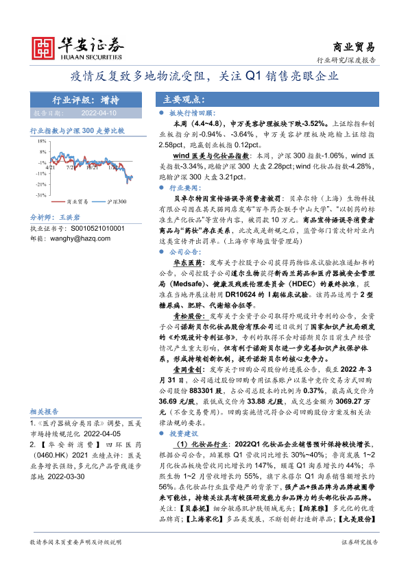 【华安证券】【20220410】商业贸易行业:疫情反复致多地物流受阻,关注Q1销售亮眼企业-18页