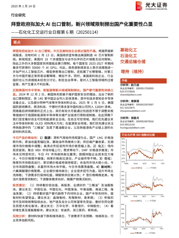 【光大证券】【20250126】2025年01月26日更新-【光大证券】石化化工交运行业日报第6期:拜登政府拟加大AI出口管制,新兴领域限制频出国产化重要性凸显-11页
