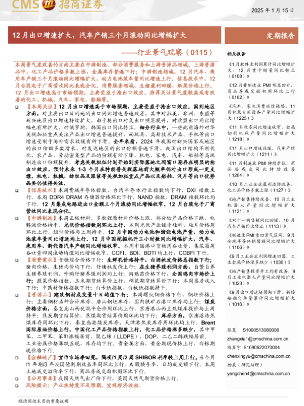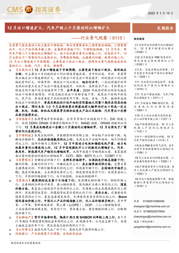 【海通证券】【20250127】2025年01月27日更新-【招商证券】行业景气观察:12月出口增速扩大,汽车产销三个月滚动同比增幅扩大-34页