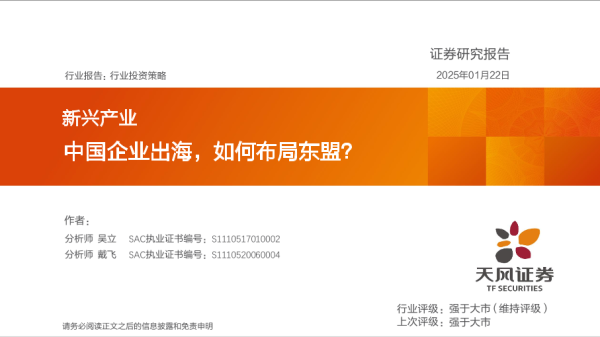 【天风证券】【20250211】2025年02月11日更新-【天风证券】新兴产业行业投资策略:中国企业出海,如何布局东盟-71页