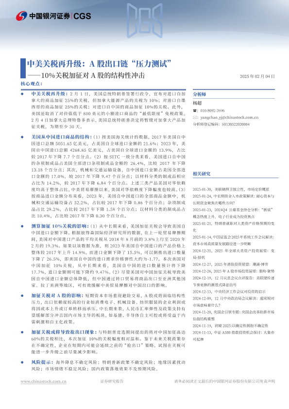 【银河证券】【20250218】中美关税再升级:A股出口链“压力测试”,10%关税加征对A股的结构性冲击-16页