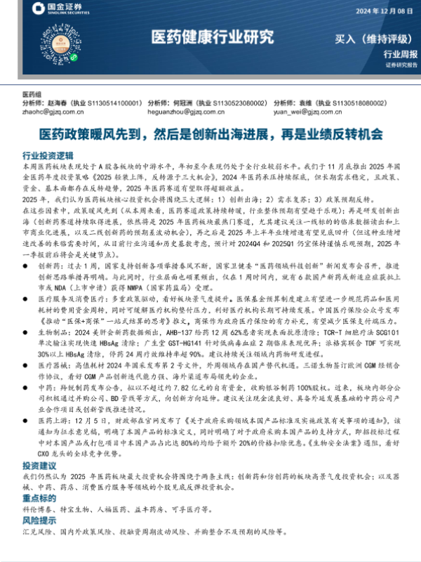 【国金证券】【20250220】2025年02月20日更新-【国金证券】医药健康行业研究:医药政策暖风先到,然后是创新出海进展,再是业绩反转机会-18页