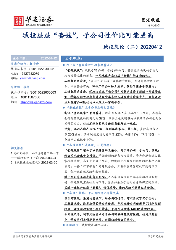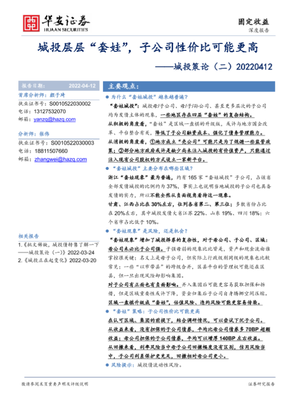 【华安证券】【20220412】城投策论(二):城投层层“套娃”,子公司性价比可能更高-16页