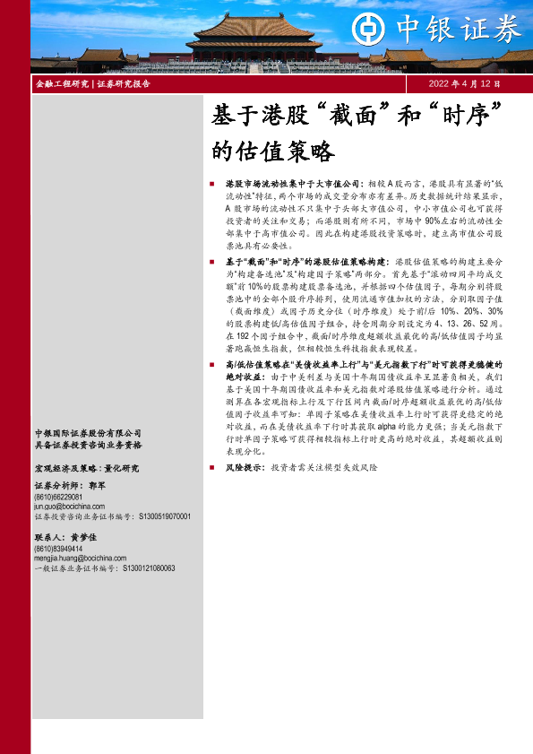 【中银证券】【20220412】基于港股“截面”和“时序”的估值策略-24页