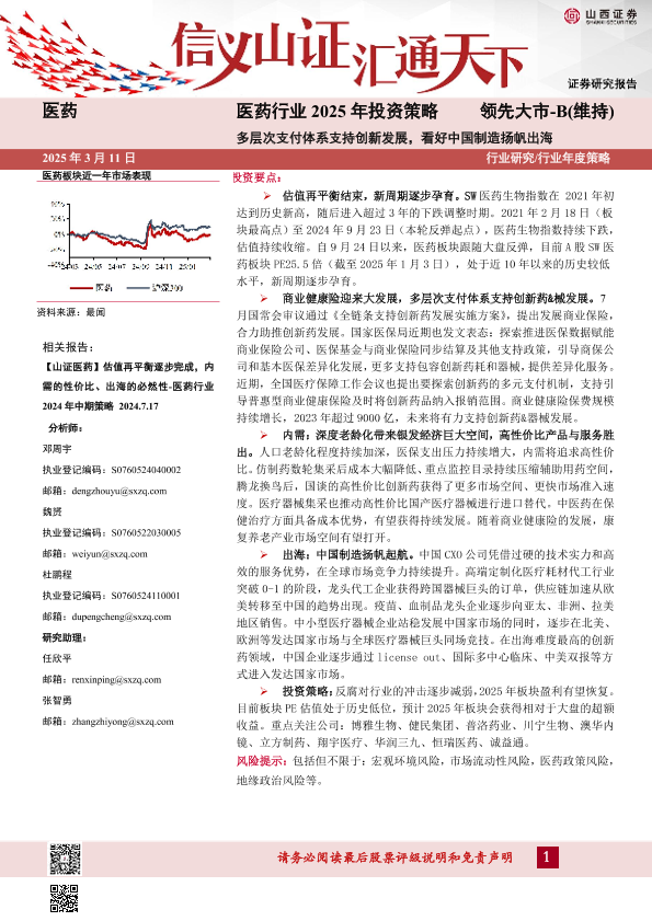 【山西证券】【20250314】医药行业2025年投资策略:多层次支付体系支持创新发展,看好中国制造扬帆出海-27页