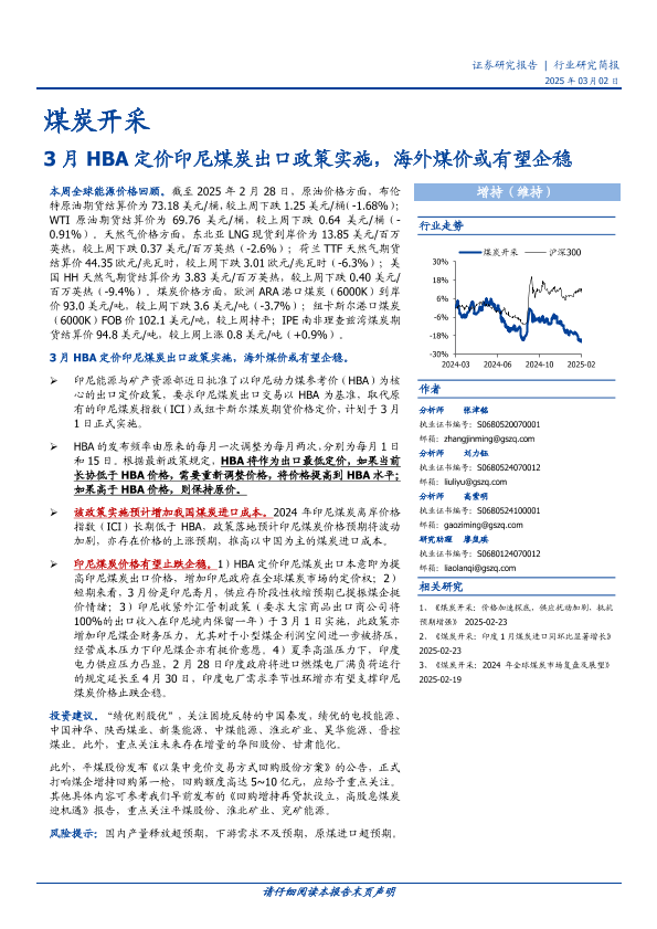 【国盛证券】【20250315】2025年03月15日更新-【国盛证券】煤炭开采行业研究简报:3月HBA定价印尼煤炭出口政策实施,海外煤价或有望企稳-13页