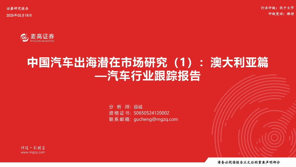 【麦高证券】【20250318】2025年03月21日更新-汽车行业跟踪报告:中国汽车出海潜在市场研究-1-:澳大利亚篇-32页