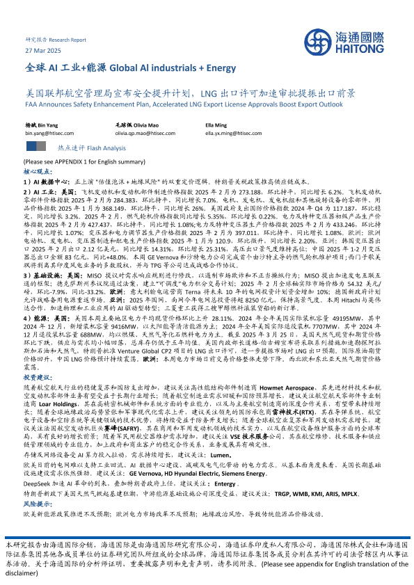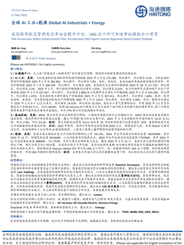 【海通国际】【20250327】全球AI工业+能源:美国联邦航空管理局宣布安全提升计划,LNG出口许可加速审批提振出口前景-40页