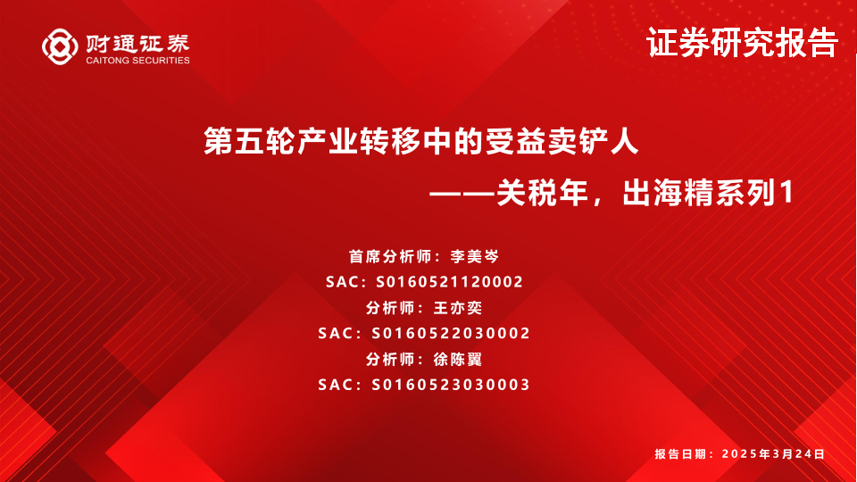 【财通证券】【20250324】关税年,出海精系列1:第五轮产业转移中的受益卖铲人-24页