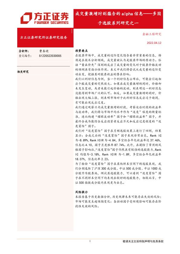 【方正证券】【20220412】多因子选股系列研究之一:成交量激增时刻蕴含的alpha信息-15页