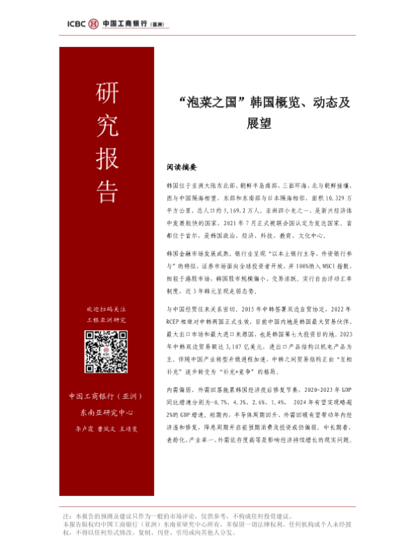【中国工商银行(亚洲)东南亚研究中心】【20250106】2025-01-06-工银亚洲研究2024泡菜之国韩国概览动态及展望报告-22页