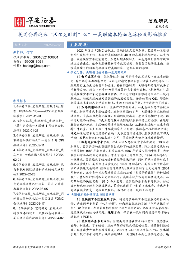【华安证券】【20220412】美国会再迎来“沃尔克时刻”么?—美联储本轮加息路径及影响推演-23页