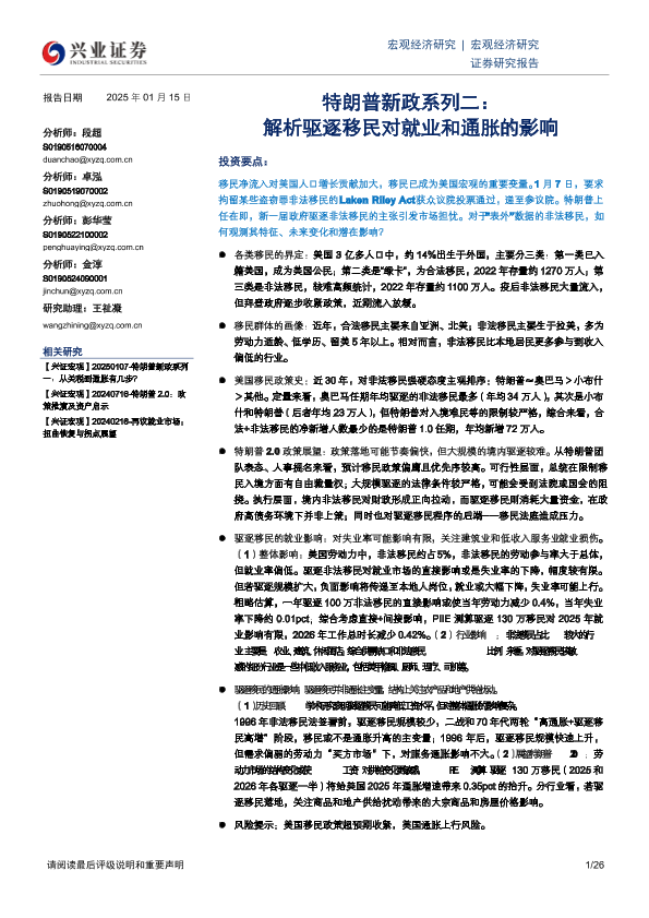 【兴业证券】【20250115】特朗普新政系列二:解析驱逐移民对就业和通胀的影响-26页