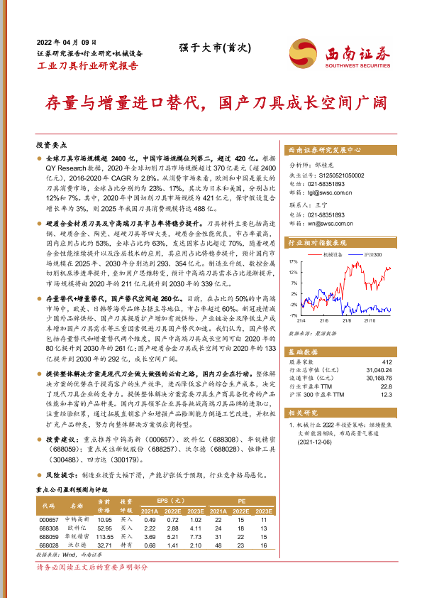 【西南证券】【20220409】工业刀具行业研究报告:存量与增量进口替代,国产刀具成长空间广阔-21页