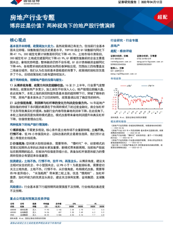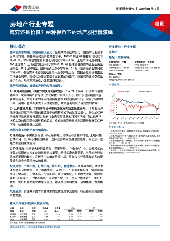【国信证券】【20220412】房地产行业专题:博弈还是价值?两种视角下的地产股行情演绎-16页