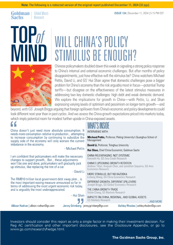 【Goldman Sachs】【20250122】2025-01-22-中国的刺激政策够提振经济吗?-32页