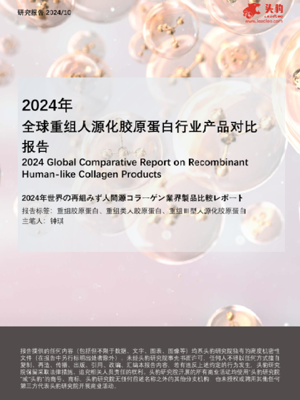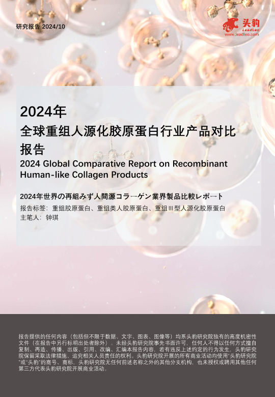 【头豹研究院】【202410】2024年全球重组人源化胶原蛋白行业产品对比报告-20页