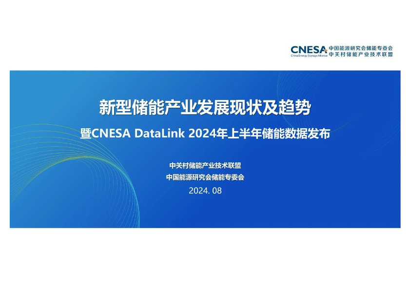 【中关村储能产业技术联盟中国能源研究会储能专委会】【202408】2025-01-25-2024年新型储能产业发展现状及趋势-22页
