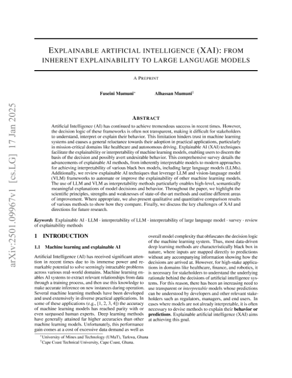 【Fuseini Mumuni】【20250126】可解释人工智能(XAI):从内在可解释性到大语言模型-51页