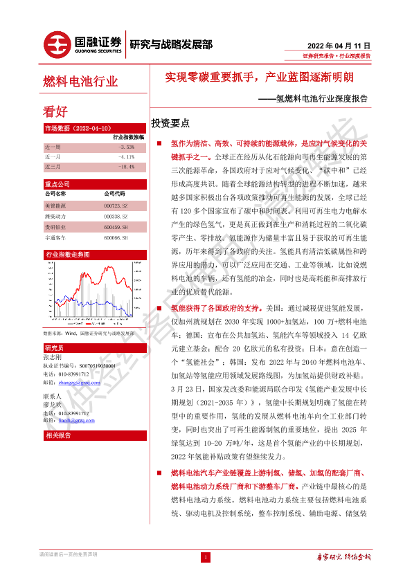 【国融证券】【20220411】氢燃料电池行业深度报告:实现零碳重要抓手,产业蓝图逐渐明朗-27页