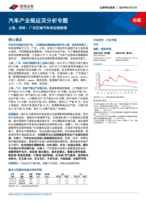 【国信证券】【20220415】汽车行业产业链近况分析专题:上海、吉林、广东区域汽车供应链梳理-24页