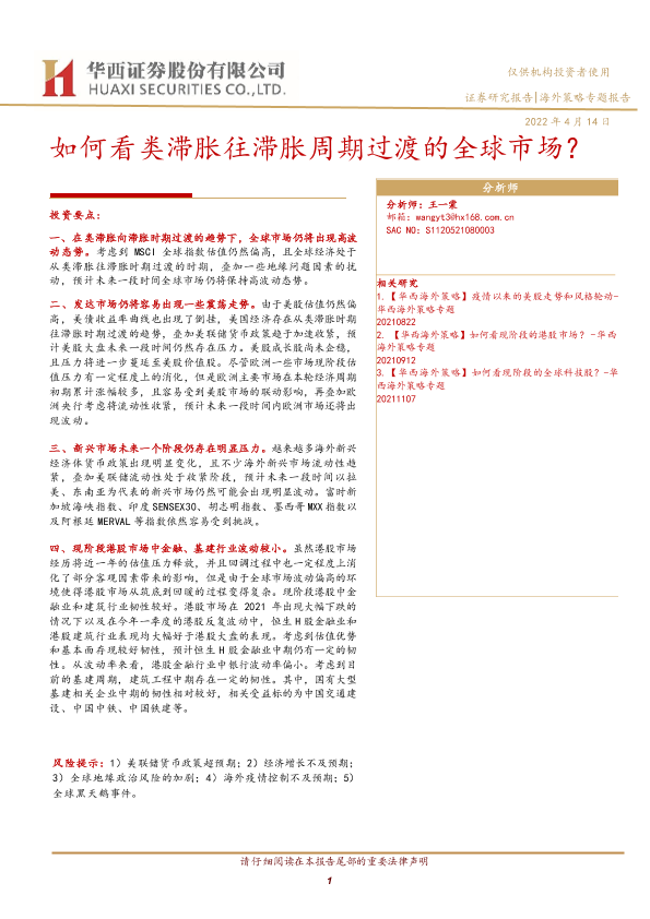 【华西证券】【20220414】海外策略专题报告:如何看类滞胀往滞胀周期过渡的全球市场?-19页