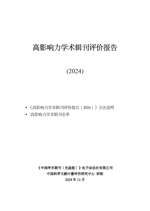 【中国科学文献计量评价研究中心】【202412】2025高影响力学术辑刊评价报告-16页