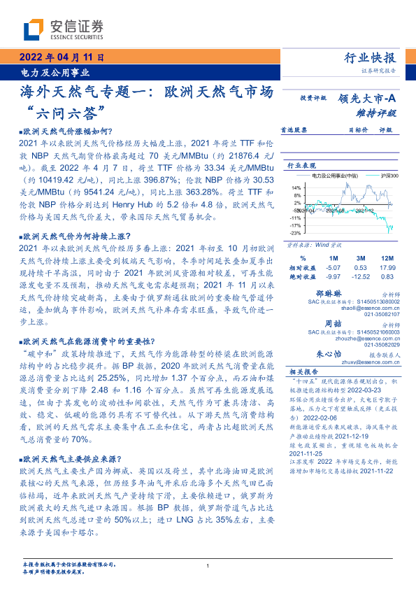 【安信证券】【20220411】环保及公用事业行业海外天然气专题一:欧洲天然气市场“六问六答”-16页