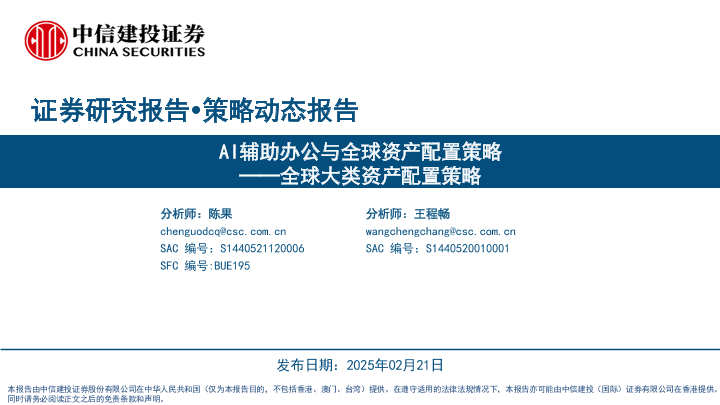 【中信建投证券】【20250221】2025-02-22-全球大类资产配置策略:AI辅助办公与全球资产配置策略-25页