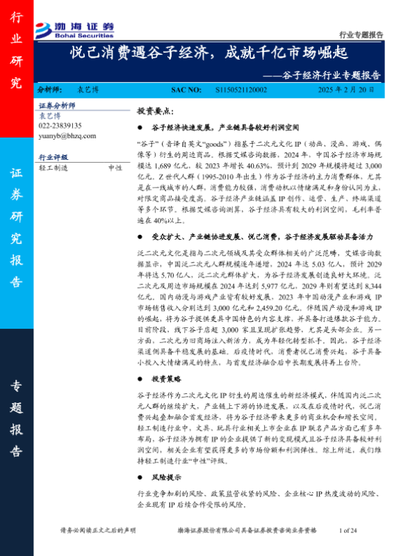 【渤海证券】【20250220】2025-02-23-谷子经济行业专题报告:悦己消费遇谷子经济,成就千亿市场崛起-24页