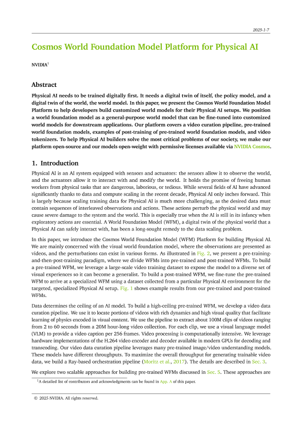 【NVIDIA】【20250107】Cosmos世界基础模型平台:物理人工智能研究报告-75页