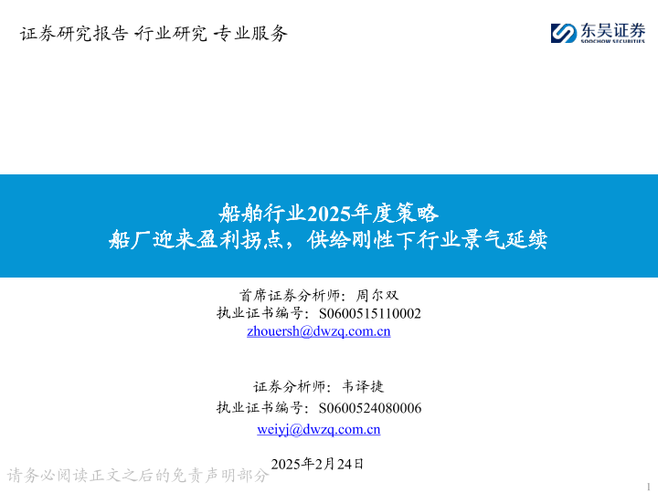 【东吴证券】【20250224】船舶行业2025年度策略:港口迎来盈利拐点,供给刚性下行业景气延续-35页