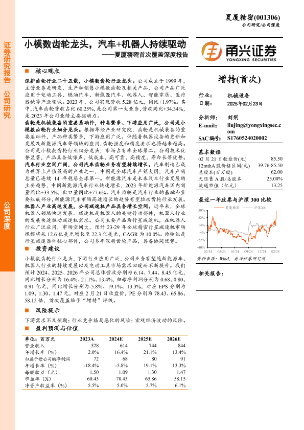 【甬兴证券】【20250224】2025-02-24-夏厦精密(001306):首次覆盖深度报告:小模数齿轮龙头,汽车+机器人持续驱动-24页