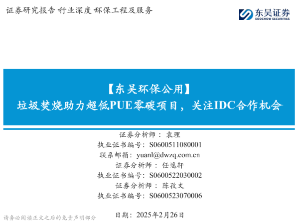 【东吴证券】【20250226】垃圾焚烧助力超低PUE零碳项目,关注IDC合作机会-27页