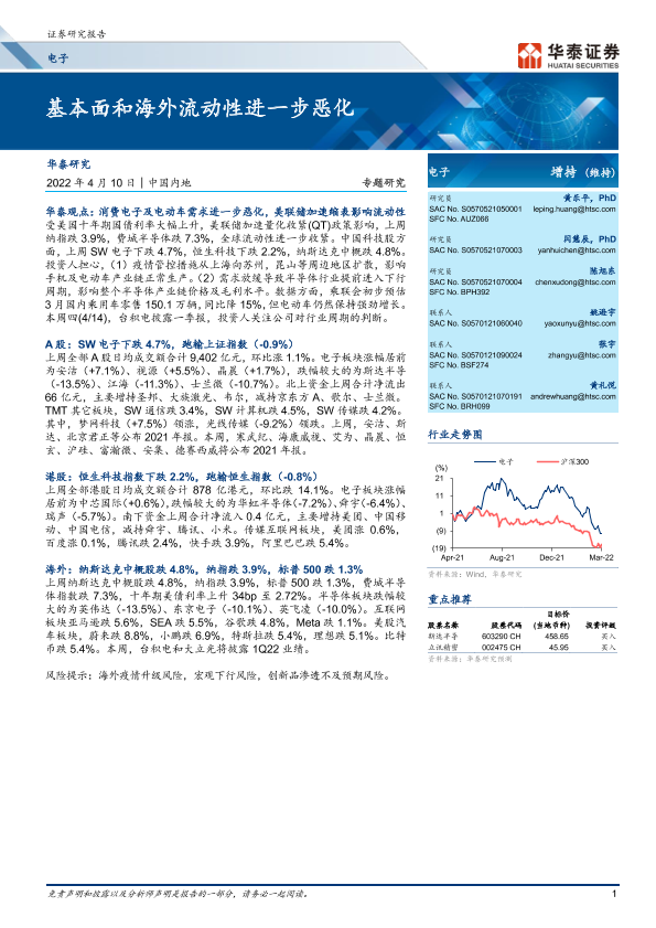 【华泰证券】【20220410】电子行业专题研究:基本面和海外流动性进一步恶化-18页