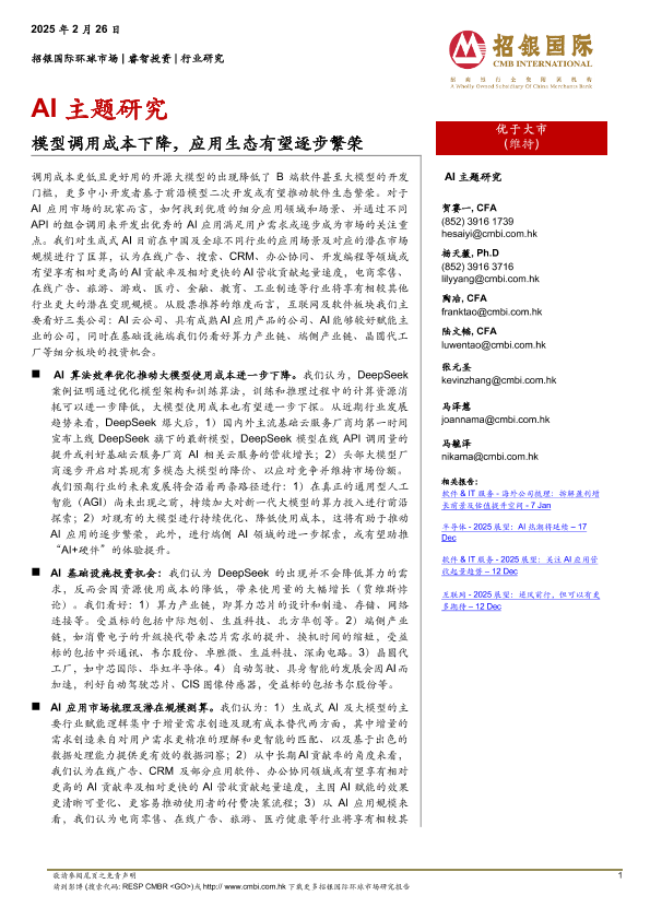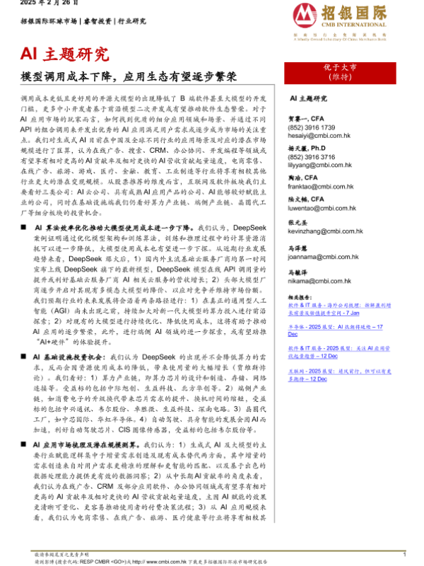【招银国际环球市场】【20250226】AI主题研究:模型调用成本下降,应用生态有望逐步繁荣-32页