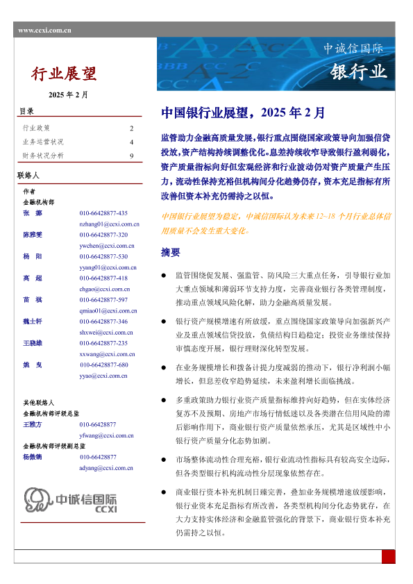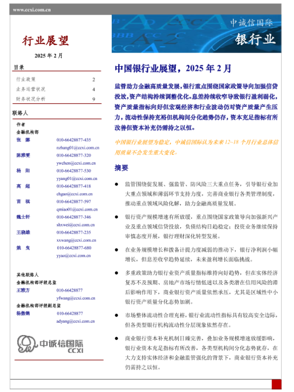 【中诚信国际】【202502】中国银行业展望,2025年2月-19页