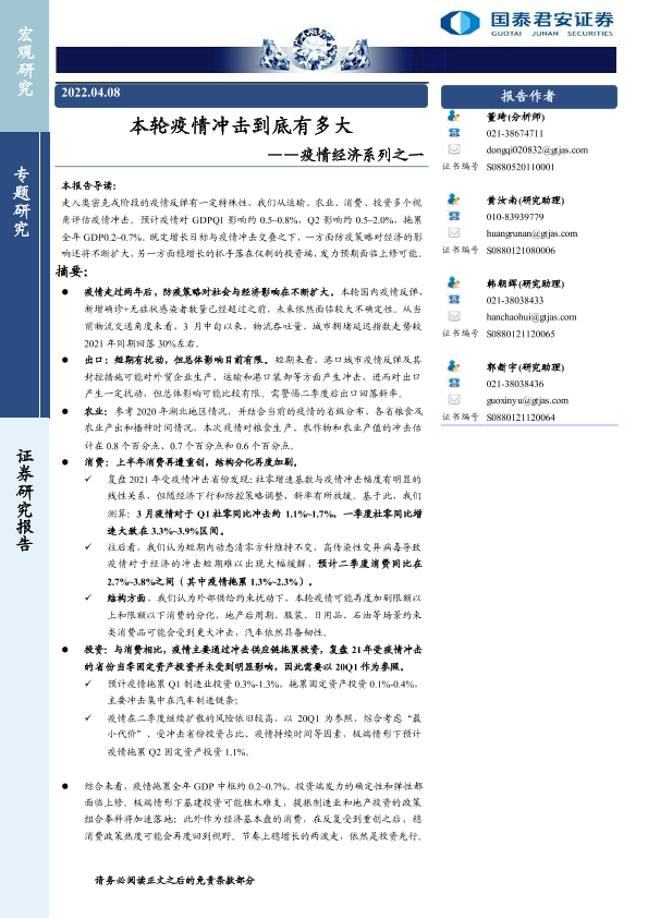 【国泰君安证券】【20220408】本轮疫情冲击到底有多大-18页