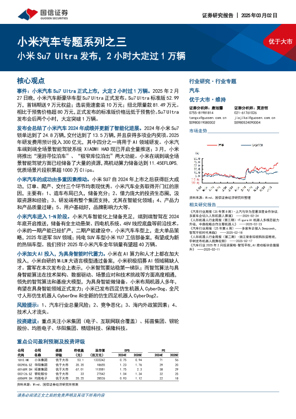 【国信证券】【20250302】汽车行业小米汽车专题系列之三:小米Su7+Ultra发布,2小时大定过1万辆-22页
