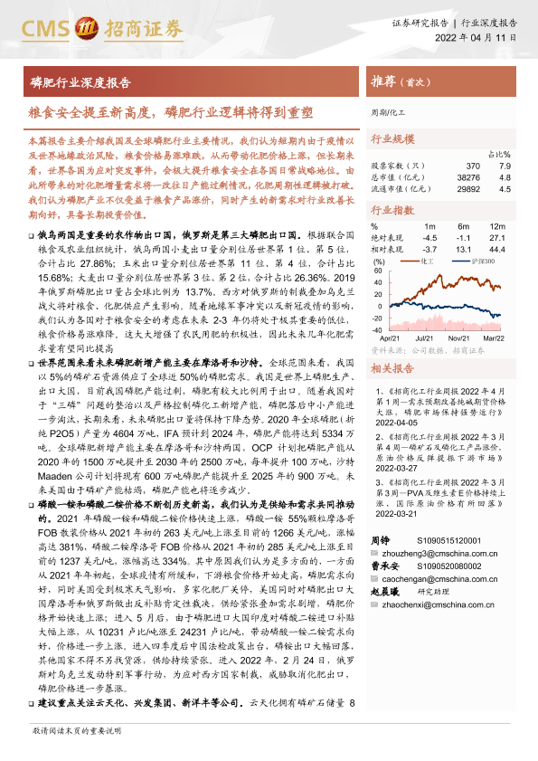 【海通证券】【20220411】磷肥行业深度报告:粮食安全提至新高度,磷肥行业逻辑将得到重塑-25页