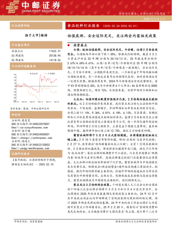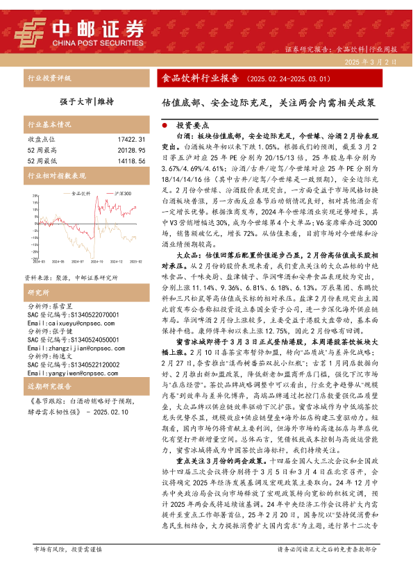 【中邮证券】【20250303】2025-03-03-中邮证券-食品饮料行业报告:估值底部、安全边际充足,关注两会内需相关政策-17页