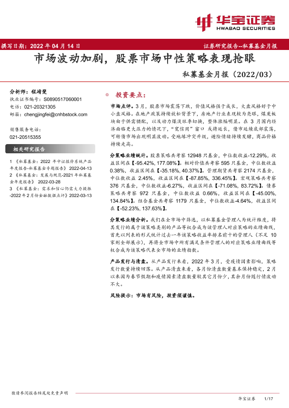 【华宝证券】【20220414】私募基金月报:市场波动加剧,股票市场中性策略表现抢眼-17页