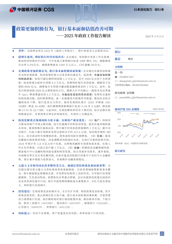 【银河证券】【20250305】银行业2025年政府工作报告解读:政策更加积极有为,银行基本面和估值改善可期-20页