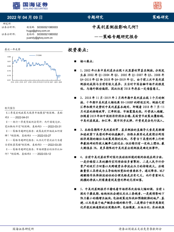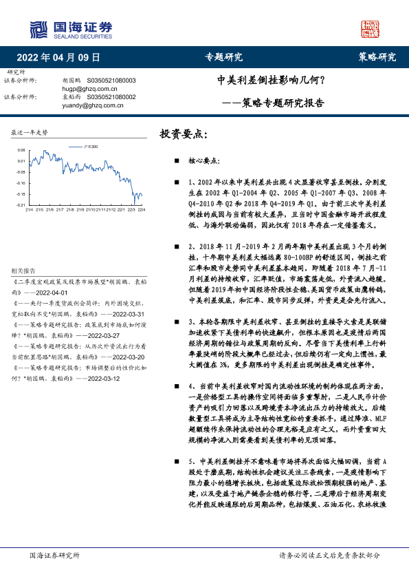 【国海证券】【20220409】策略专题研究报告:中美利差倒挂影响几何?-22页