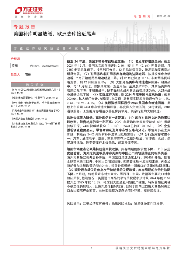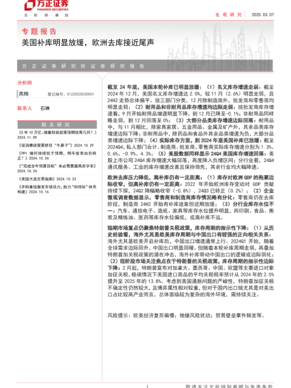 【方正证券】【20250308】美国补库明显放缓,欧洲去库接近尾声-12页