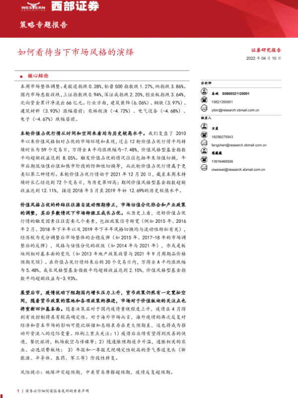 【西部证券】【20220410】策略专题报告:如何看待当下市场风格的演绎-15页