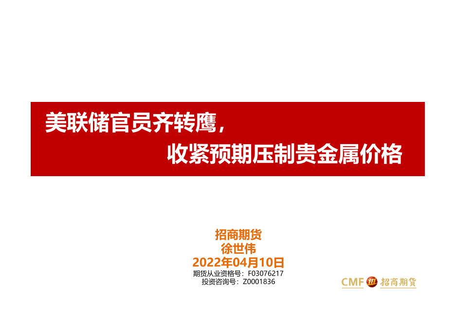 【招商期货】【20220410】美联储官员齐转鹰,收紧预期压制贵金属价格-23页
