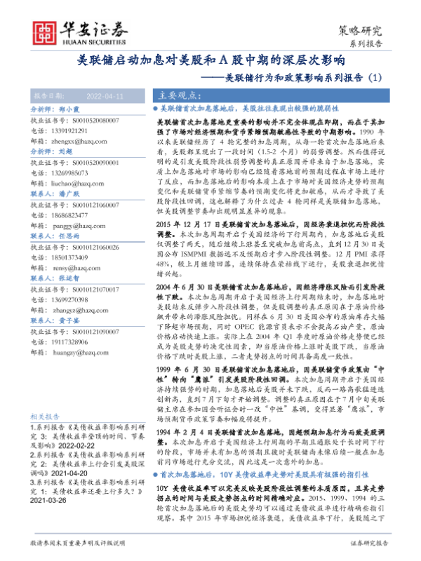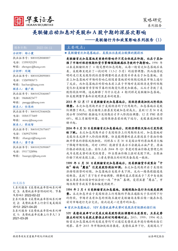 【华安证券】【20220411】美联储启动加息对美股和A股中期的深层次影响-29页