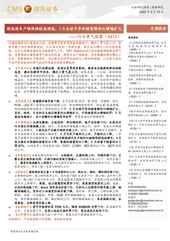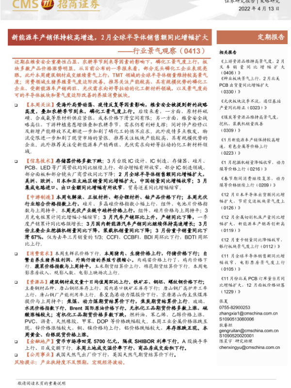 【海通证券】【20220413】行业景气观察:新能源车产销保持较高增速,2月全球半导体销售额同比增幅扩大-34页