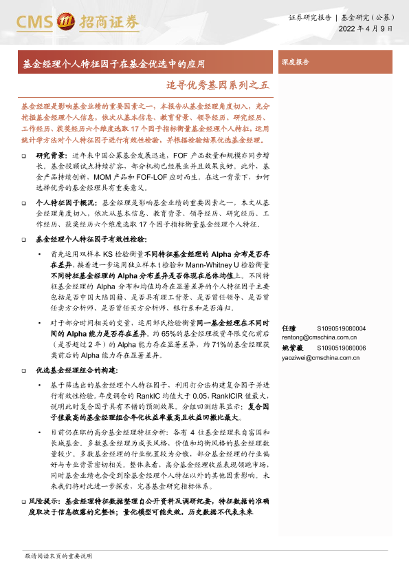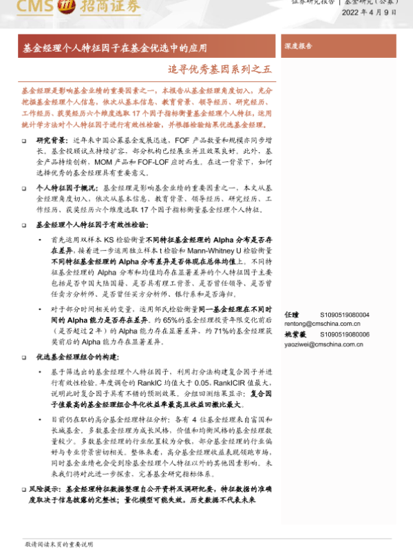 【海通证券】【20220409】追寻优秀基因系列之五:基金经理个人特征因子在基金优选中的应用-21页